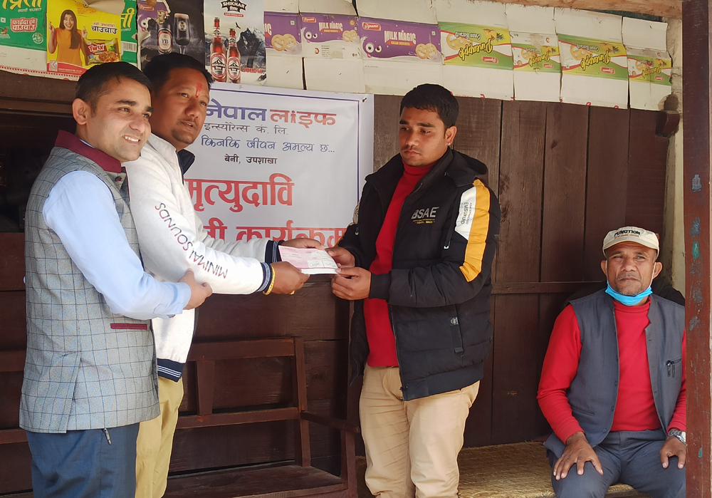 नेपाल लाइफको बेनी उपशाखाद्धारा बीमितलाई साढे पाँच लाख हस्तान्तरण, एक वर्षमा ४२ लाख बढी भुक्तानी