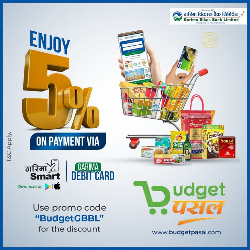 गरिमा विकास बैंकका ग्राहकले बजेट पसल डटकमबाट सामान किन्दा ५ प्रतिशत छुट पाइने