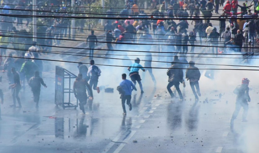 एमसीसीे विरोधी प्रदर्शनकारीमाथि अश्रुग्यास र पानीको फोहोरा