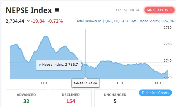 नेप्से १९ अंकले घट्दा ३ अर्बमा खुम्चियो कारोबार, २ उपसूचकमा छायो हरियाली