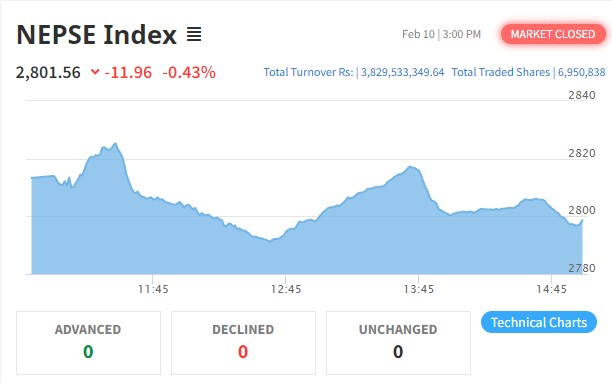 नेप्से ११ अंकले घट्दा पौने ४ अर्बको शेयर कारोबार