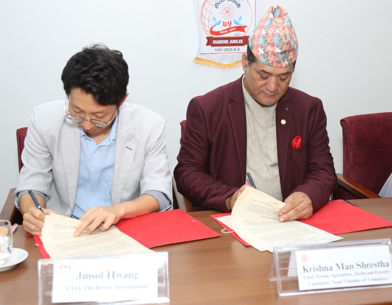 कृषि समिति चेम्बर र कोरियाको ब्रिज इन्टरनेशनलबीच कृषि तथा साना–मझौला उद्यम विकासमा सहकार्यको सम्झौता