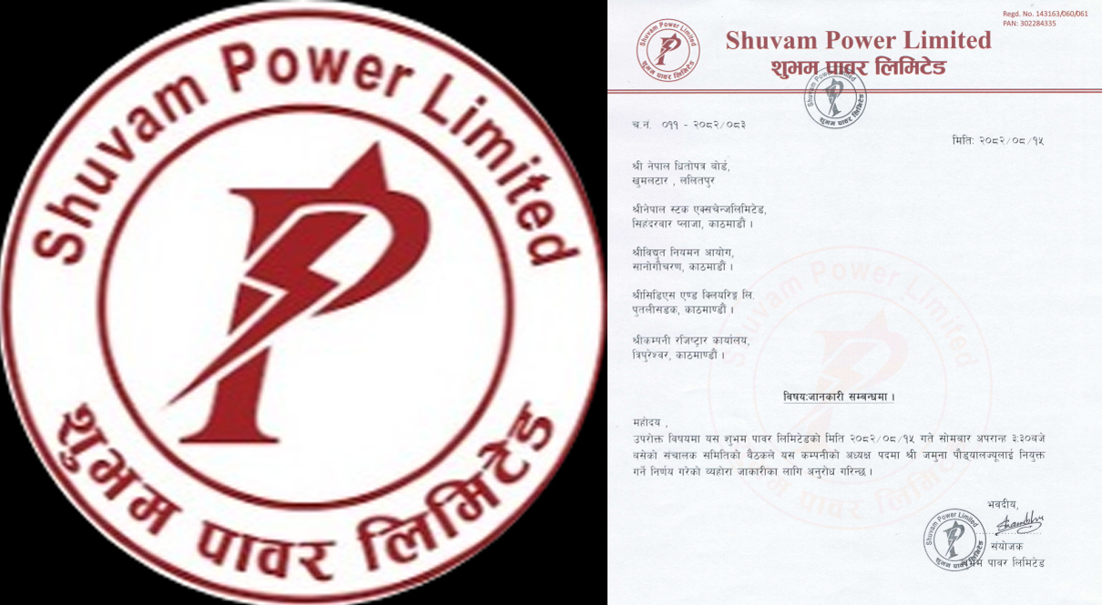 शुभम् पावरका अध्यक्ष गुरागाईद्वारा राजिनामा, पौड्याल बने नयाँ अध्यक्ष