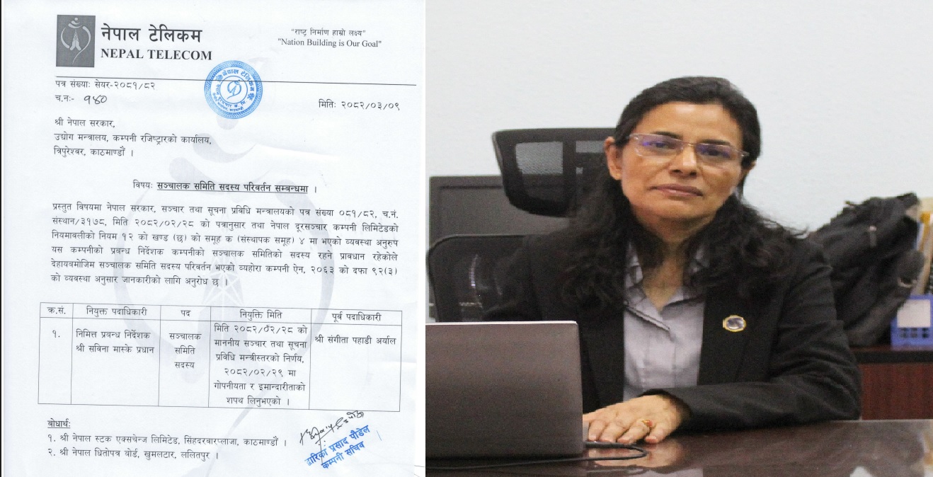 नेपाल दुरसञ्चार कम्पनीको सञ्चालकमा सविना मास्के प्रधान नियुक्त