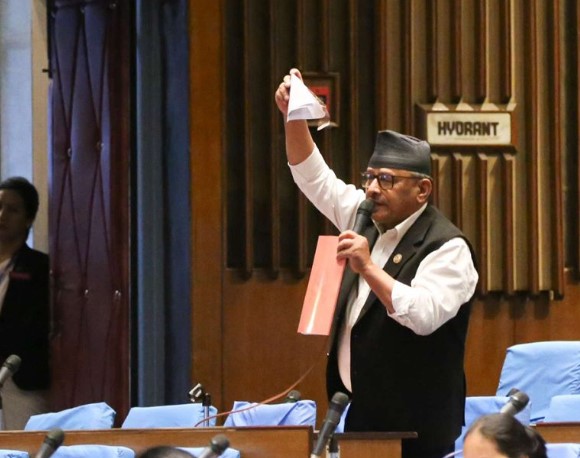 सांसद अमरबहादुर थापाले संसद बैठकमै च्याते बजेट पुस्तिका