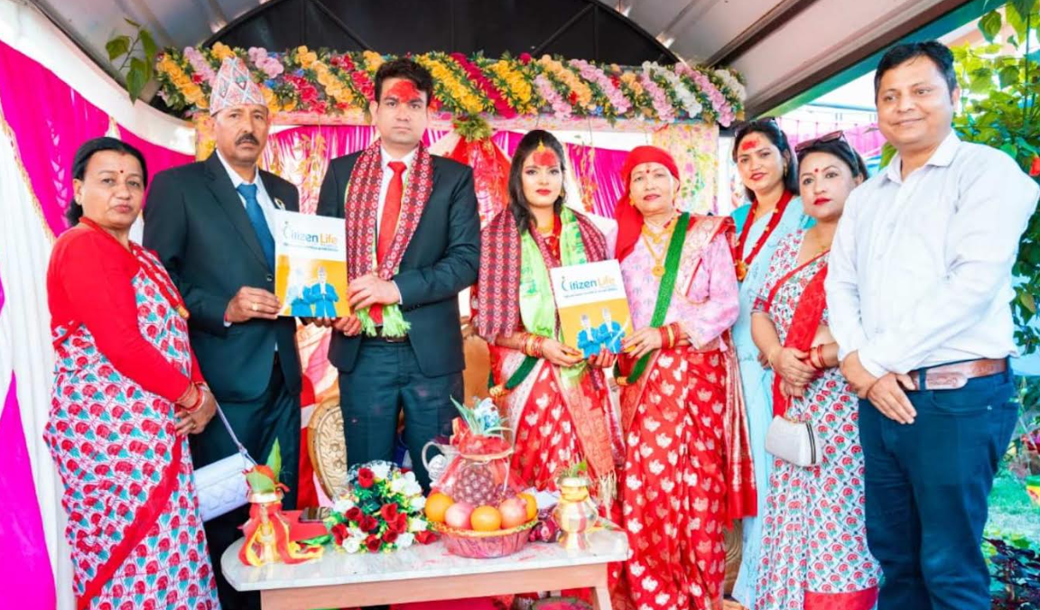 बुबा आमाद्वारा छोरा–बुहारीलाई बिबाहमा उपहार स्वरूप बीमालेख प्रदान