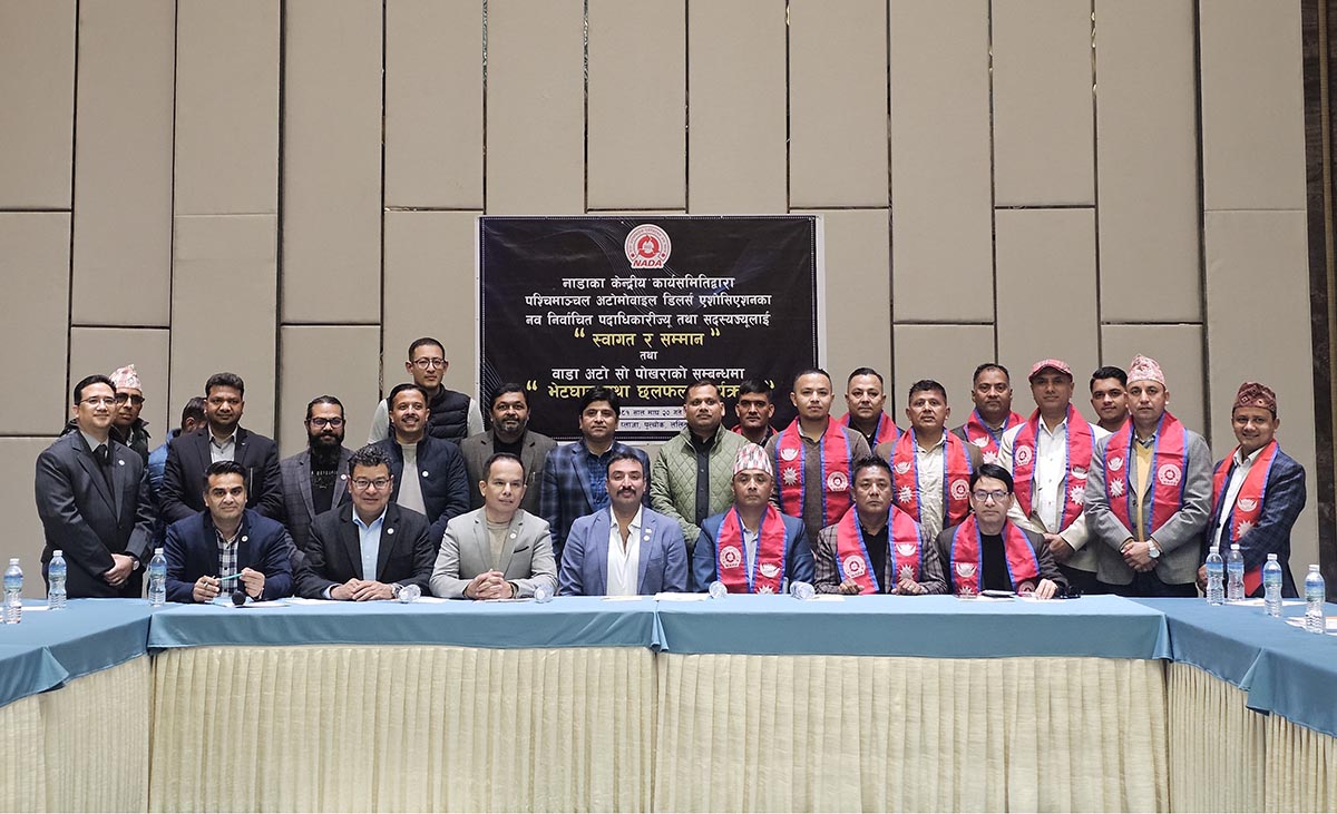 काठमाडौँ । नाडा अटोमोबाइल डिलर्स एशोसिएसन (नाडा) ले पश्चिमाञ्चल अटोमोवाइल डिलर्स एशोसिएसन (वाडा) का नव निर्वाचित पदाधिकारीहरूलाई स्वागत र सम्मान गर्दै पोखरामा पहिलोपटक वाडा अटो शो आयोजना गर्ने निर्णय गरेको छ। नाडाका अध्यक्ष करण चौधरीको प्रमुख आतिथ्यमा आयोजित छलफल...