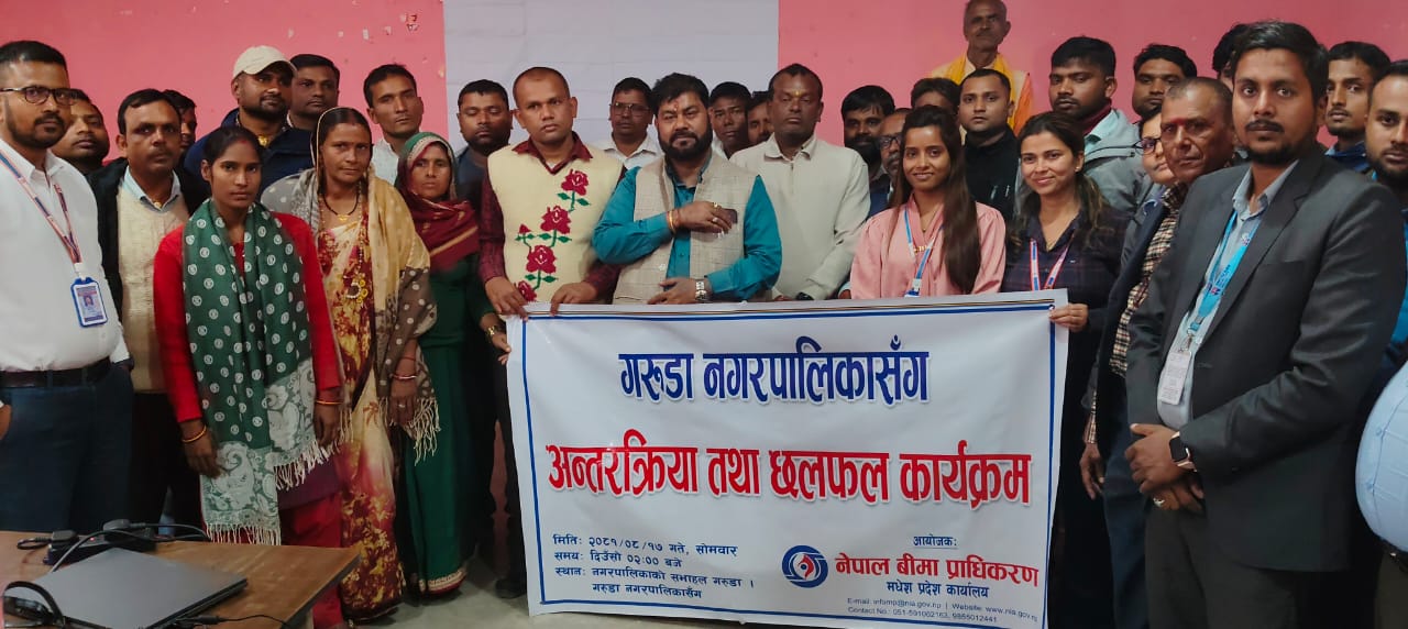 काठमाडौँ । नेपाल बीमा प्राधिकरण, मधेश प्रदेशद्वारा मंसिर १७ गते गरुडा नगरपालिकामा बीमा प्रवर्द्धनात्मक अन्तरक्रिया तथा छलफल कार्यक्रम सम्पन्न भएको छ। नेपाल बीमा प्राधिकरण मधेश प्रदेश कार्यालयका प्रमुख प्रीति देवको सभापतित्व र गरुडा नगरपालिकाका नगर प्रमुख कन्थमुनी प्रसाद जयसवालको...