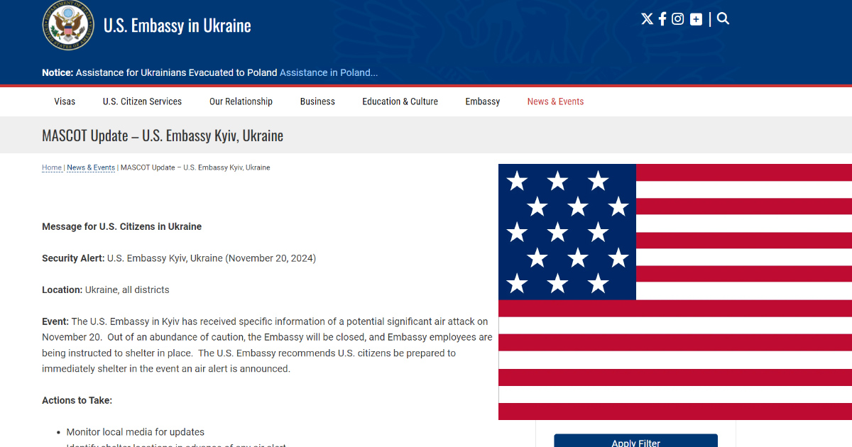 रसियाले ध्वस्त पार्ने संकेतपछि किभस्थित अमेरिकी दुताबास बन्द, सबै कर्मचारीलाई भाग्न निर्देशन