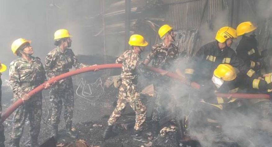 चाबहिलस्थित काठ गोदाममा आगलागी, लाखौँको क्षति