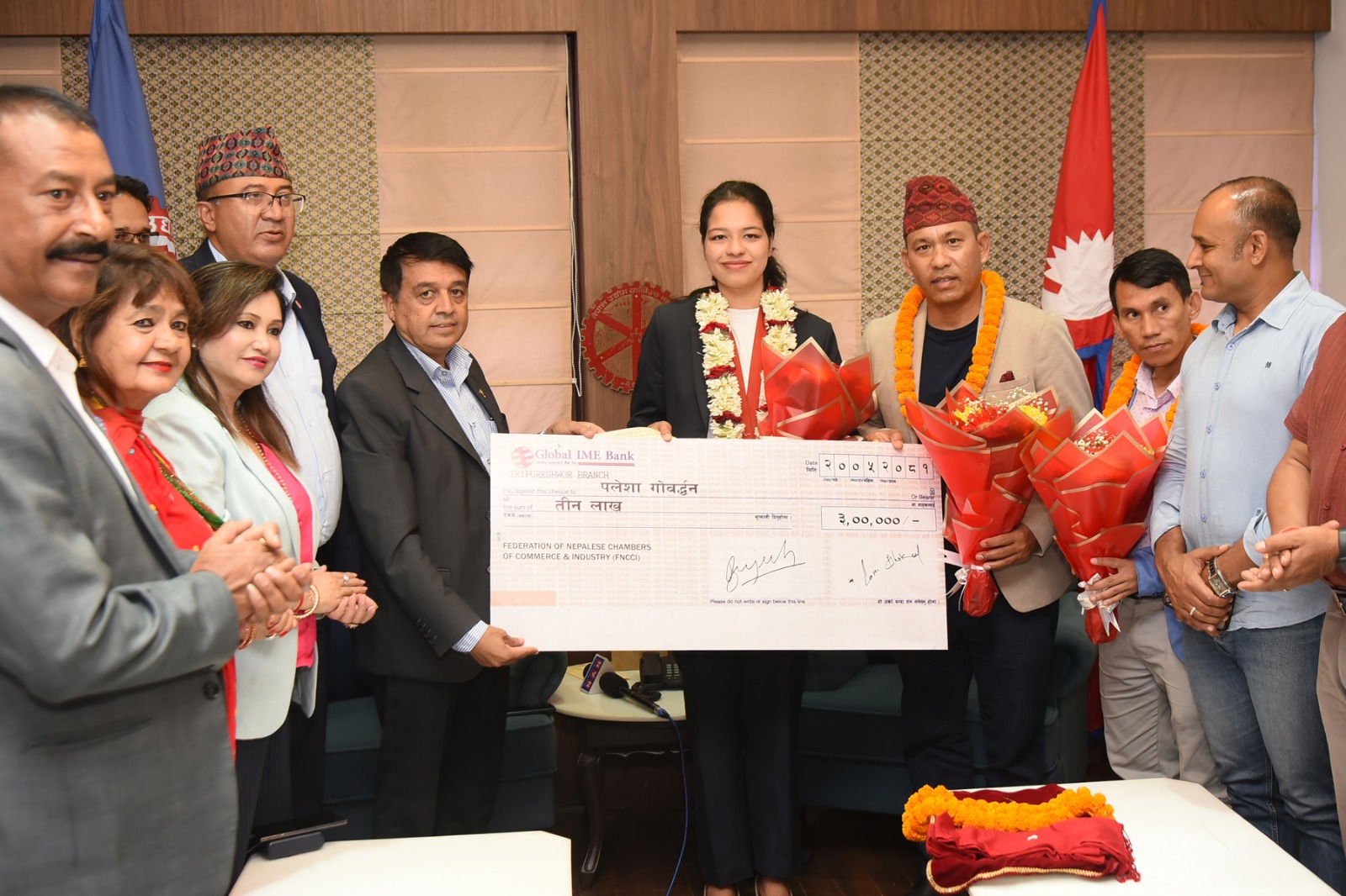 महासंघद्वारा प्यारालम्पिकमा काश्यपदक बिजेता पलेशा गोवर्धनलाई तीन लाख रुपैयाँसहित सम्मान