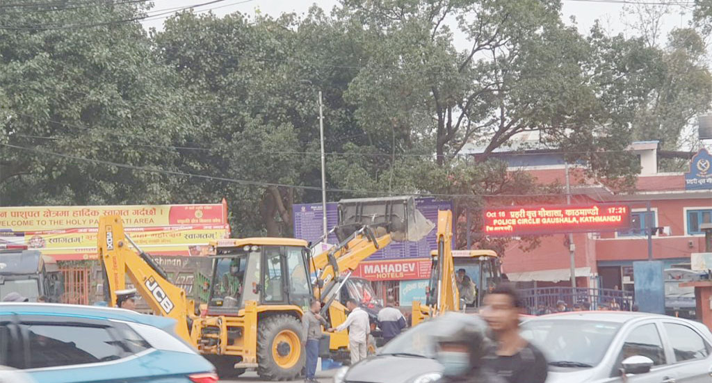 काठमाडौं । गौशाला धर्मशाला परिसरमा रहेको अनधिकृत संरचना हटाउन भन्दै गएको काठमाडौं महानगरका दुई डोजर प्रहरीले नियन्त्रणमा लिएको छ । महानगरका प्रेस संयोजक सुरेन्द्र बजगाईंका अनुसार, पशुपति क्षेत्र विकास कोष र महानगरबीच भएको धर्मशाला सञ्चालनबारेको सम्झौता अनुसार अनधिकृत संरचना...