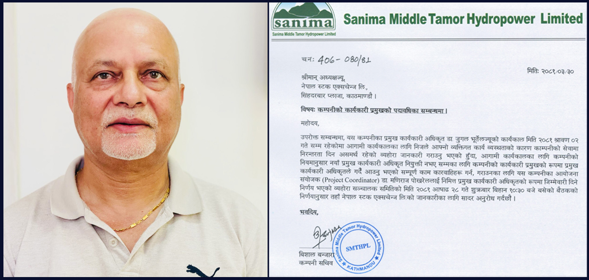 सानिमा मिडिल तमोर हाइड्रोपावरको सीईओको जिम्मेवारी आयोजना प्रमुख डा.पोखरेल