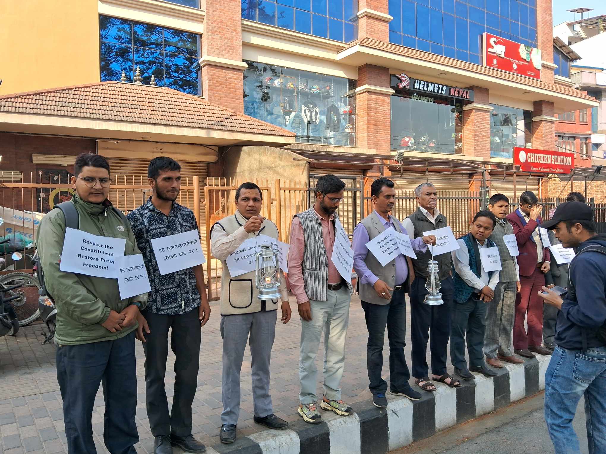 प्रेस स्वतन्त्रताको पक्षमा लालटिन बालेर प्रदर्शन