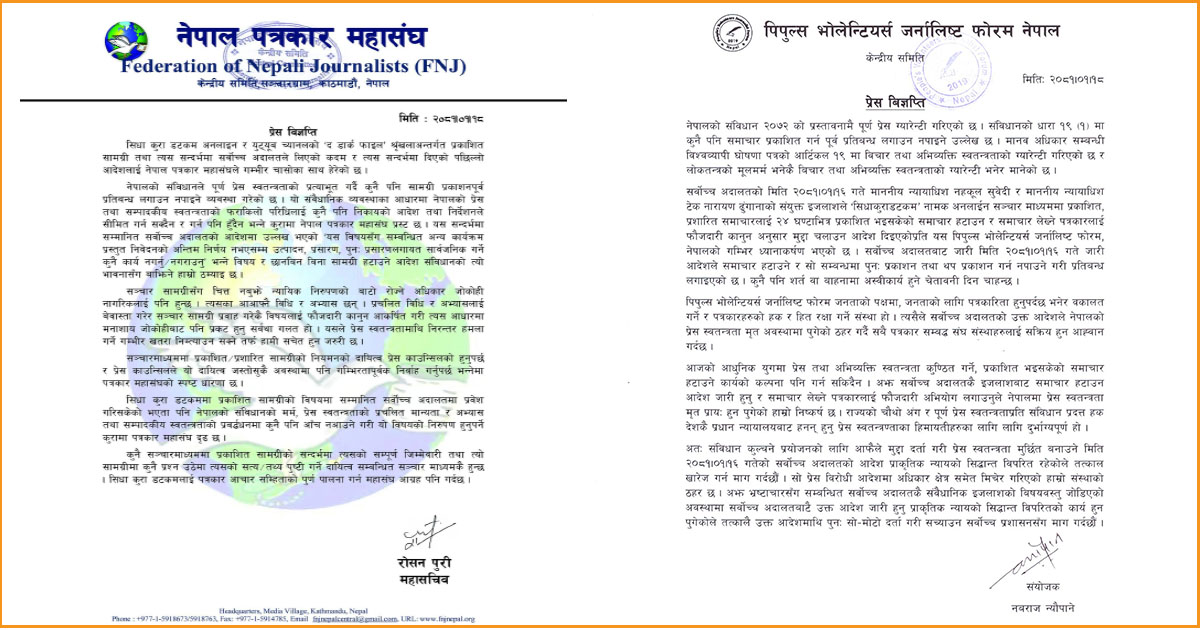 सर्वोच्च अदालतद्धारा संविधान कुल्चदै प्रेस स्वतन्त्रतामाथि धावा बोल्ने दुस्प्रयास, महासंघ र अन्य संस्थाको प्रतिवाद