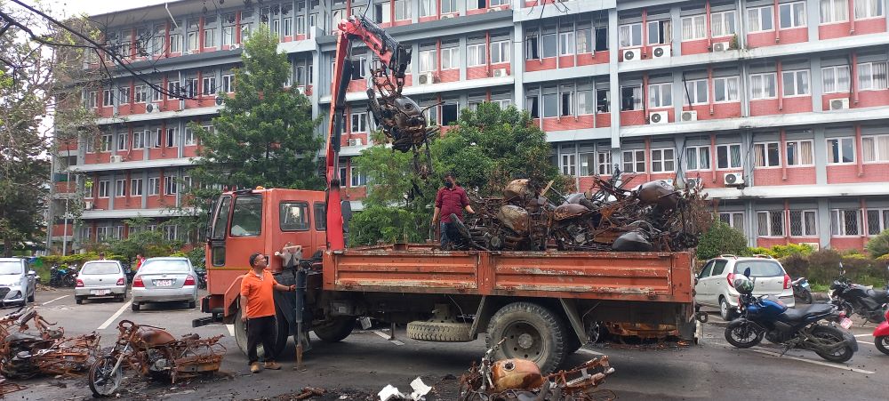 काठमाडौं । जेनजी आन्दोलनका क्रममा सिंहदरबार परिसरमा राखिएका सवारीसाधन जलेपछि आजदेखि भारी उपकरण प्रयोग गरेर तिनलाई हटाउन प्रारम्भ भएको छ । आगजनीमा क्षतिग्रस्त एक हजार सवारीसाधन सडक विभागका चार वटा भारी उपकरण प्रयोग गरेर ती हटाउन थालिएको विभागले जनाएको...