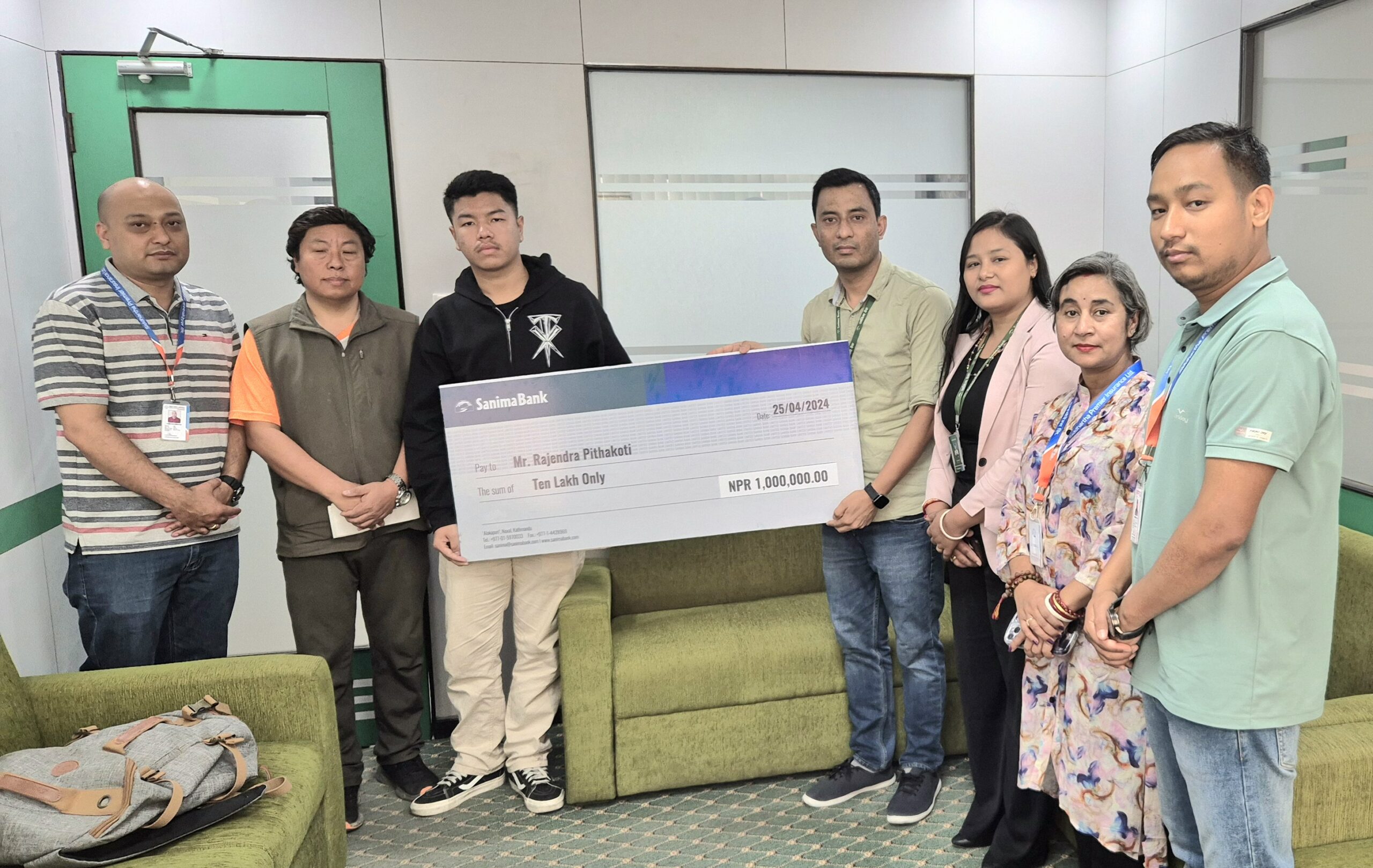 सानिमा बैंकद्वारा सानिमा सुपर सेभिङ्ग खाता अन्तर्गत १० लाखको दुर्घटना बीमा रकम हस्तान्तरण