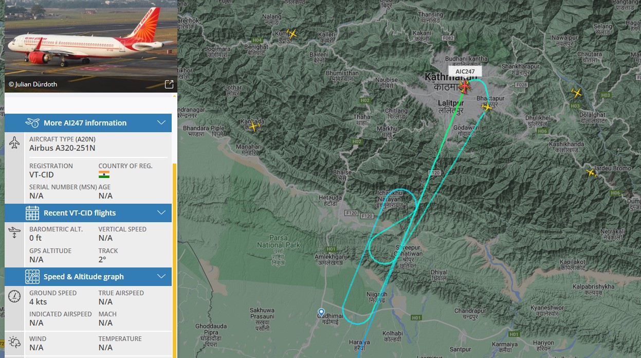 कोलकोताबाट काठमाडौं आउदै गरेको एयर इण्डियाको जहाज त्रिभुवन विमानस्थलमा ओभरसूट