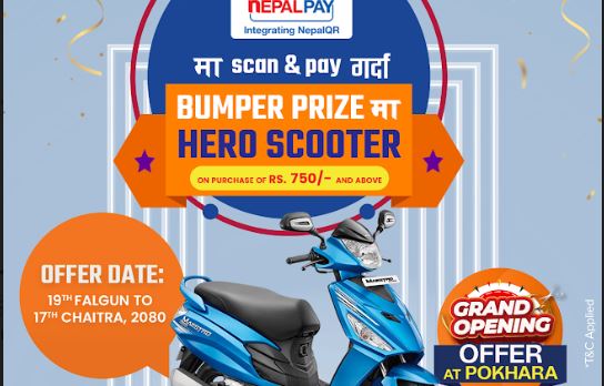 अब नेपालपे क्यूआरबाट बिगमार्टमा भुक्तानी गर्दा हिरो स्कुटर जित्ने मौका