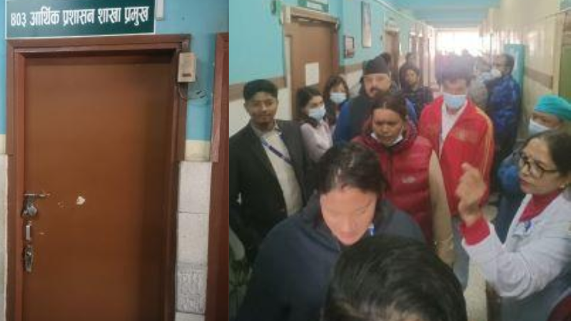 स्वास्थ्यमन्त्रीले बजेट काटेपछि वीर अस्पतालका कर्मचारीले तलव पाएनन्, प्रशासनमा ४ दिनदेखि ताला