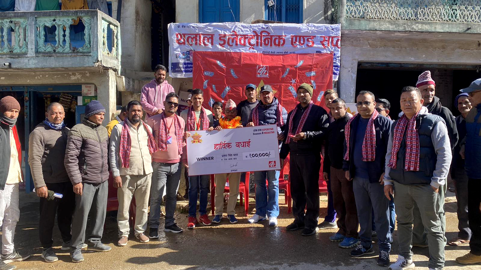 काठमाडौं । ‘हरेक हप्ता सुपरस्टार सिजनकै मेगास्टार’ योजना अन्तर्गत बैतडीका प्रताप सिंह थापाले जितेको पुरस्कार रकम हस्तान्तरण गरिएको छ । स्थानीय डिलरदाई ध्वज वहादुर थलालको समन्वयमा देहीमाण्डौ, बैतडीमा एक कार्यक्रमको आयोजना गरी थापालाई दशरथचन्द नगरपालिका बैतडीका मेयर पुष्कर राज...