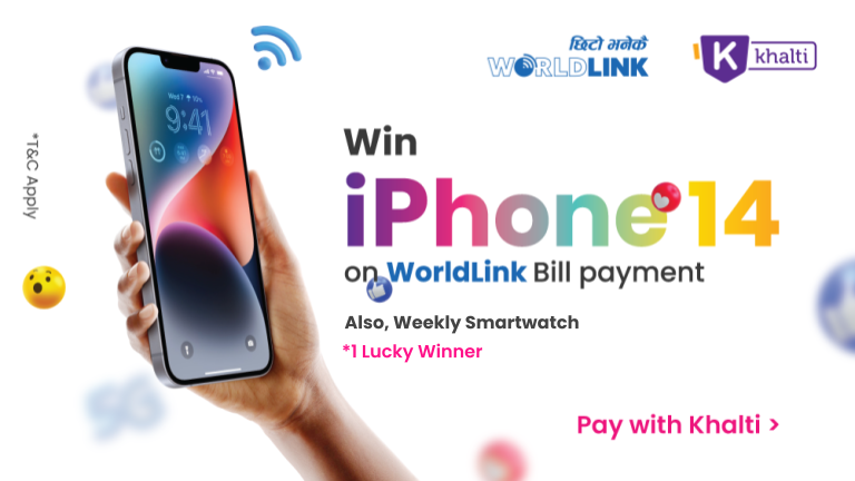 खल्तीबाट वर्ल्डलिंक भुक्तानीमा भ्याट फिर्ता, अन्य उपहारहरू सहित आइफोन १४ जित्न सकिने