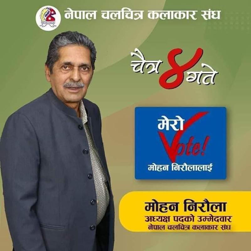 काठमाडौं । वरिष्ठ कलाकार मोहन निरौला चैत ४ गते शनिबार हुने नेपाल चलचित्र कलाकार संघको अध्यक्ष पदको उम्मेदवार बनेका छन् । नेपाल चलचित्र कलाकार संघको नयाँ कार्यसमितिका लागि वरिष्ठ कलाकार निरौलाले अध्यक्षमा आफ्नो प्यानलसहित उम्मेदवारी घोषणा गरेका हुन् ।...