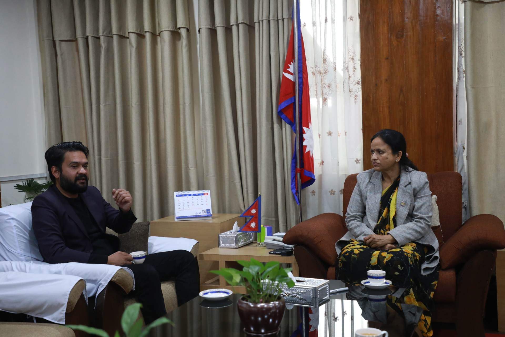 सूचना तथा संचारमन्त्री रेखा शर्मा र काठमाडौंका मेयर बालेन्द्र शाह बीच भेटवार्ता