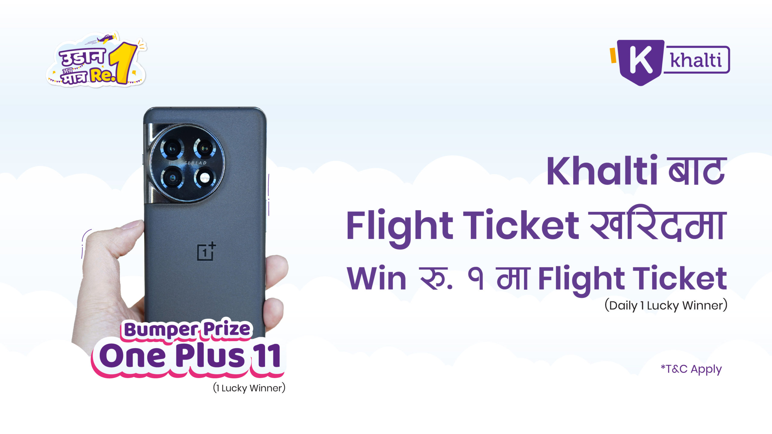 खल्तीबाट हरेक दिन १ रुपैयाँमा फ्लाइट टिकेट र बम्पर पुरस्कारको रूपमा वनप्लस ११ जित्ने अफर