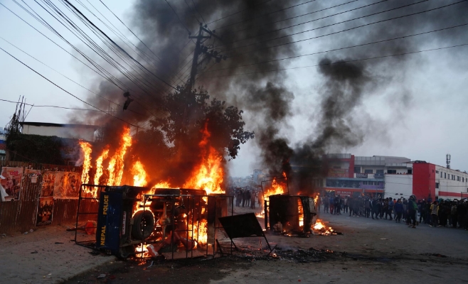 आन्दोलनरत यातायात मजदुरले जलाए प्रहरी भ्यान
