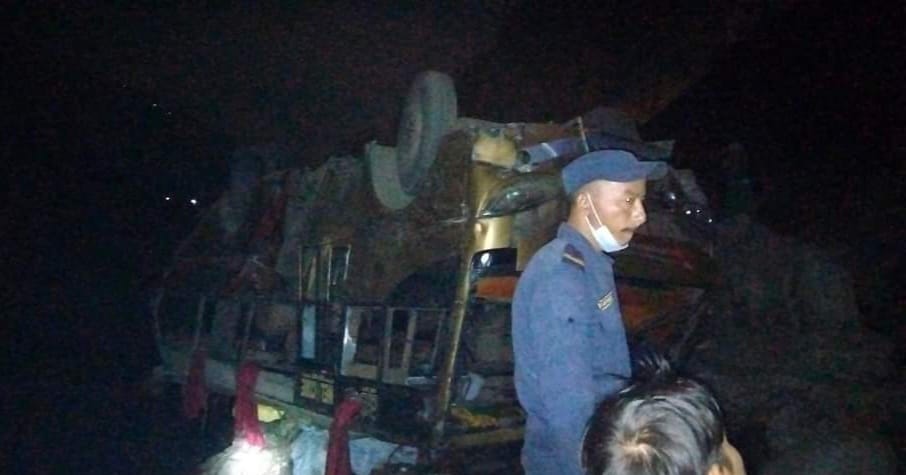 काठमाडाैंबाट रूकुमका लागि छुटेकाे बस धादिङमा दुर्घट्ना, १९ जना घाइते