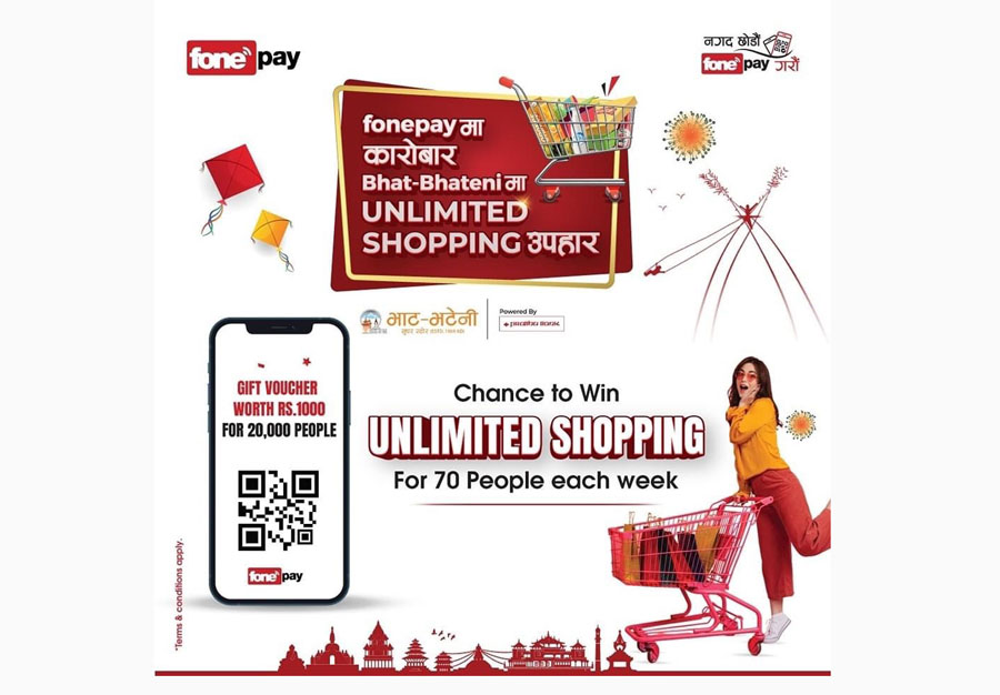 फोनपे मार्फत भाटभटेनीमा क्यूआर भुक्तानी गर्दा अनलिमिटेड सपिङ्ग गर्न सकिने