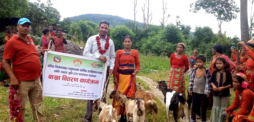 सम विकास केन्द्र डोटीद्धारा के.आई.सिहं गाउँपालिकाको लस्कर गाँउमा ११६ वटा बाख्रा वितरण