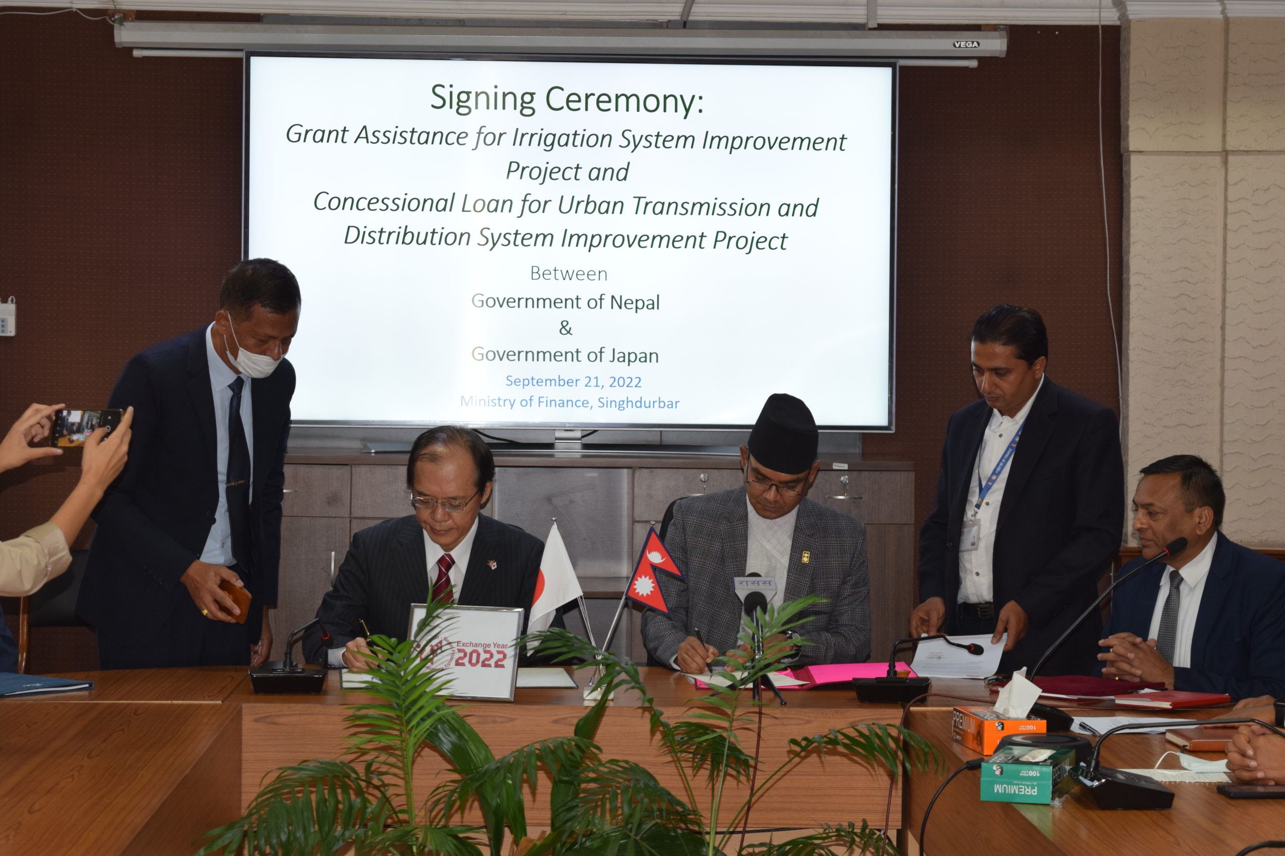 नेपाल र जापानबीच तराई सिंचाई र शहरी प्रशारण प्रणाली सुधारका दुई सम्झौतामा हस्ताक्षर