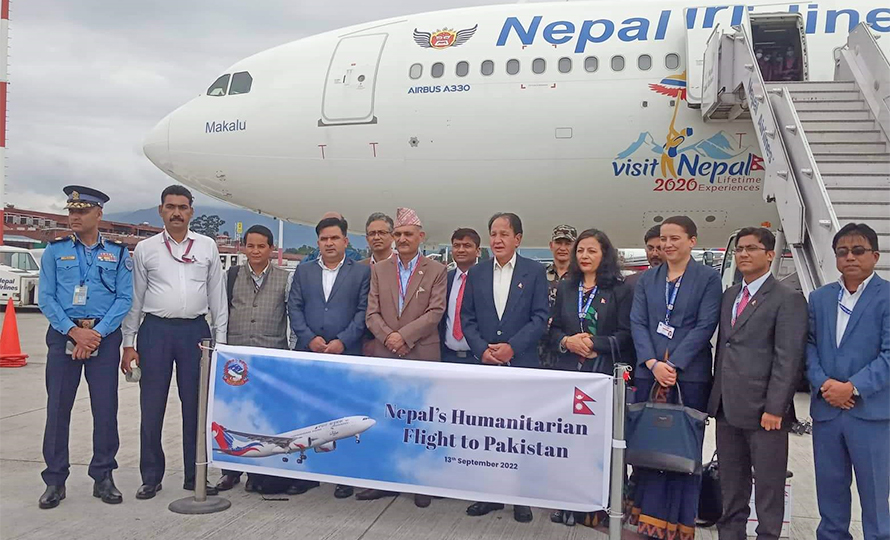 नेपाली टोली राहत सामाग्री लिएर मित्रराष्ट्र पाकिस्तान उड्यो