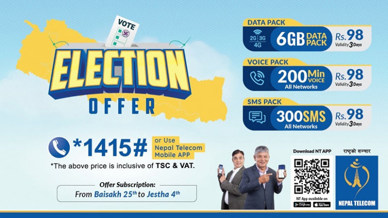नेपाल टेलिकमले ल्यायो ‘निवार्चन अफर’, ९८ रुपैयाँमा यस्तो सुविधा पाइने