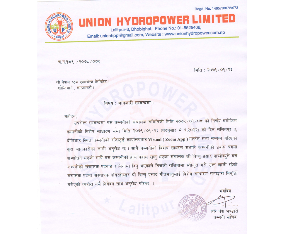 युनियन हाइड्रोपावरका संचालकमा विष्णु प्रसाद गौतम नियुक्त