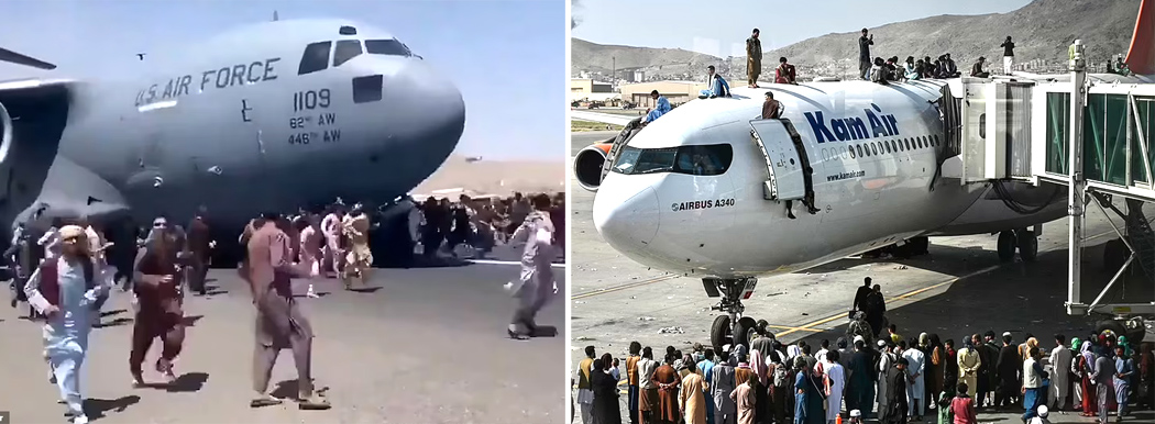 अफगानिस्तानमा देखियो यस्तो दुर्लभ दृष्यः उडिरहेको जहाजबाट यात्रु झरे, धावनमार्गमा गुडिरहेको जहाजलाई हजारौंले घेरे