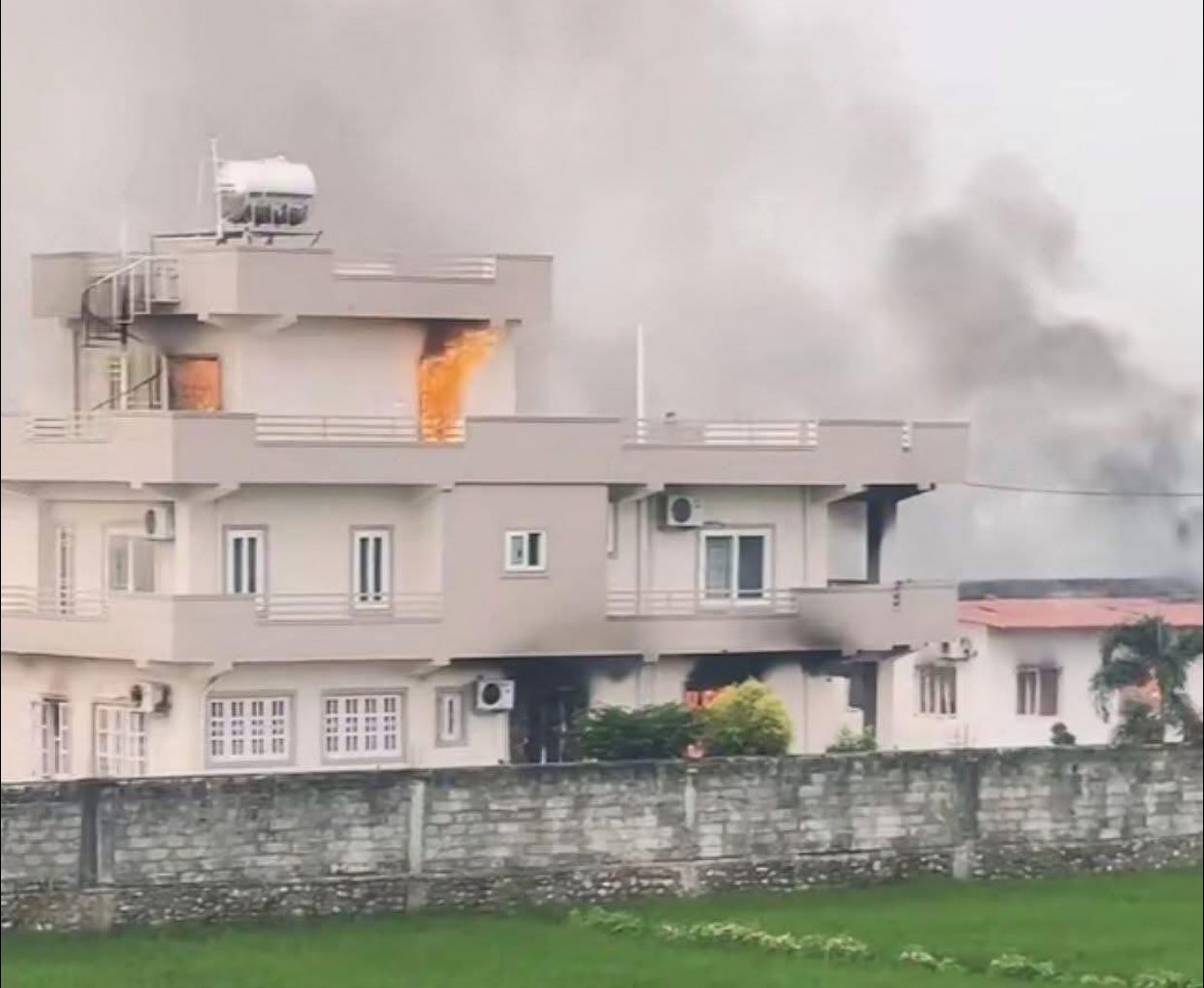 चितवनमा रहेको प्रचण्डको घरमा जेनजीले लगाए आगो