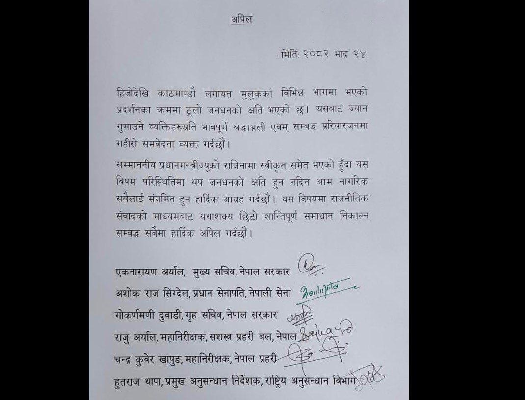 मुख्य सचिव र प्रधानसेनापतिको संयुक्त बक्तव्य, संवादमार्फत नयाँ व्यवस्थामा जाऔं