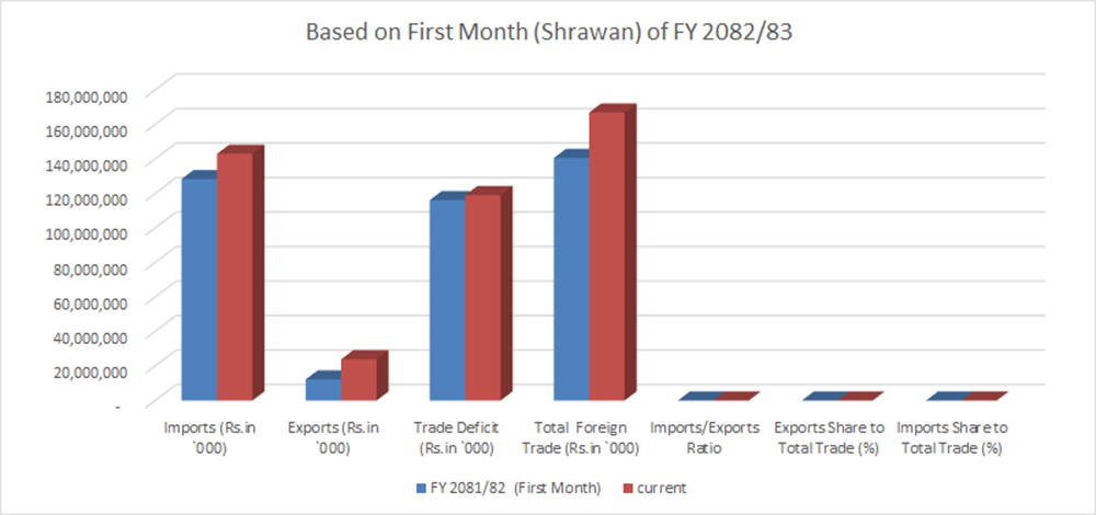 साउन महिनामा वैदेशिक व्यापारमा उछाल: निर्यातमा ९५% भन्दा बढी वृद्धि