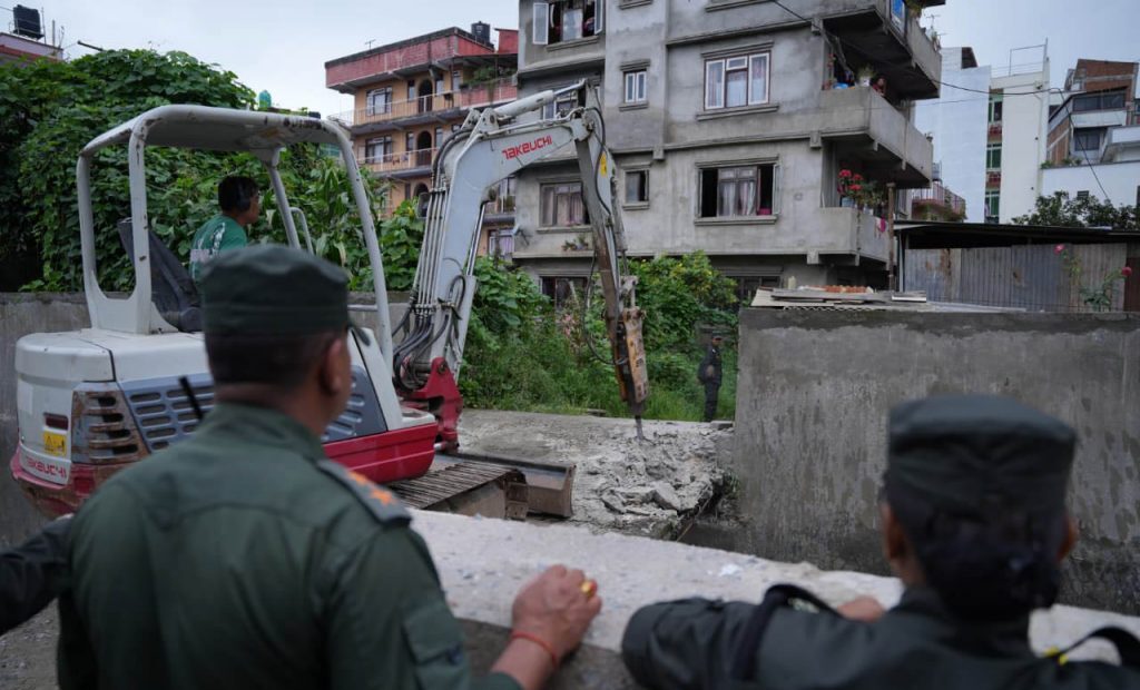 कालिमाटी खोला किनारामा महानगरले डोजर लगाएर १०० मिटरभित्रका संरचना भत्कायो