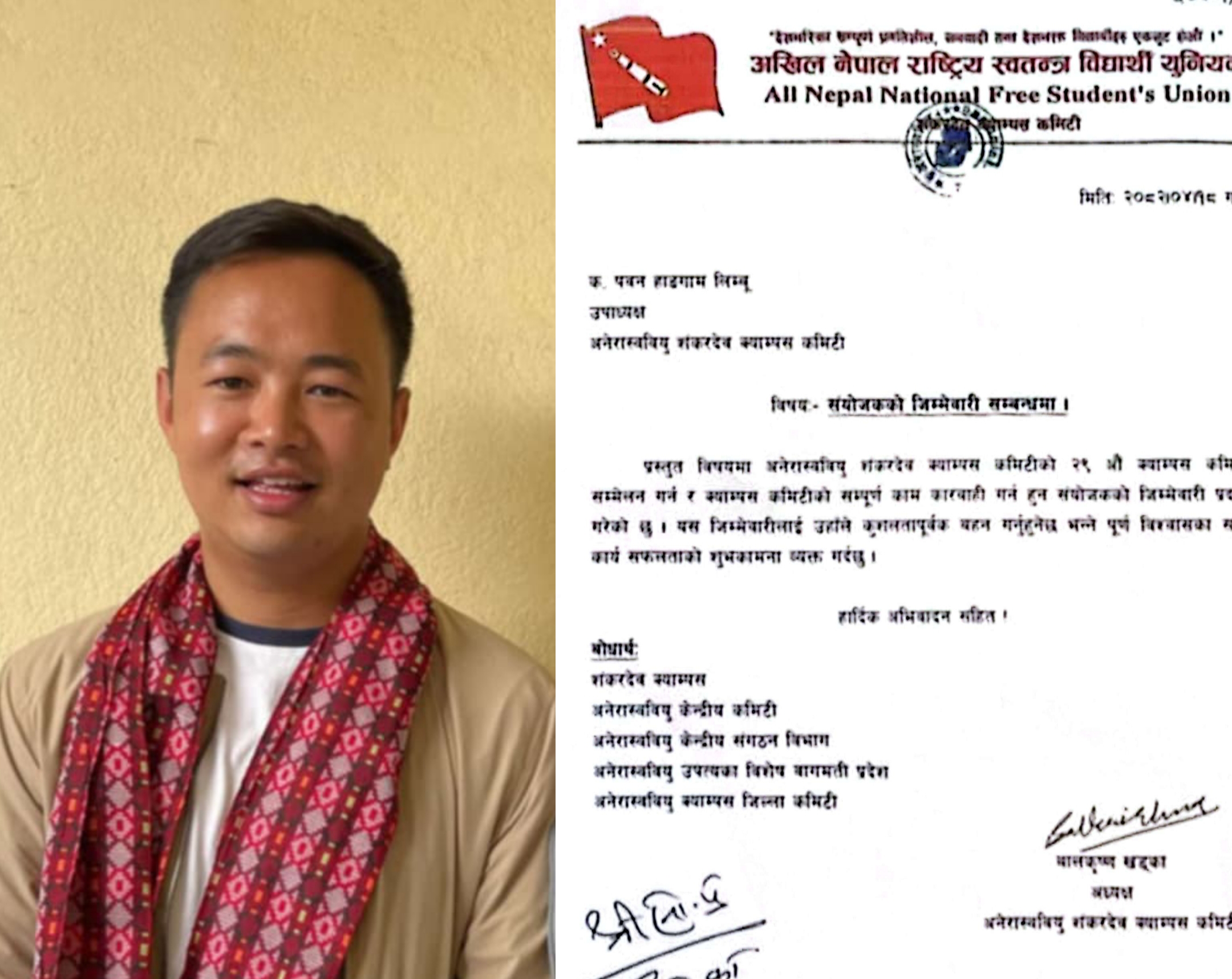 पवन हाङगाम लिम्बूलाई अनेरास्ववियु शंकरदेव क्याम्पस कमिटीको संयोजकको जिम्मेवारी