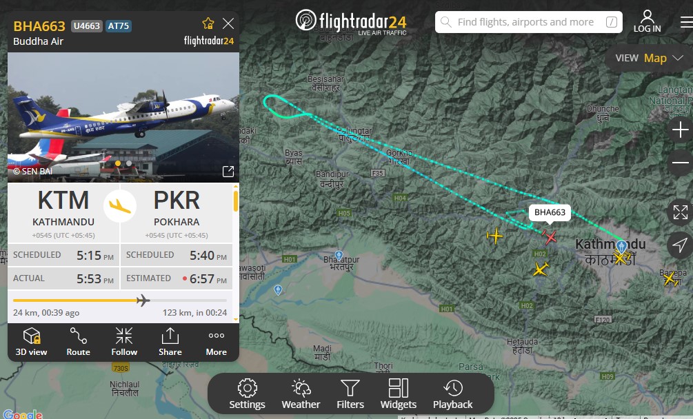 काठमाडौँबाट पोखराका लागि उडेको बुद्ध एयरको विमान बीच बाटै फर्कियो