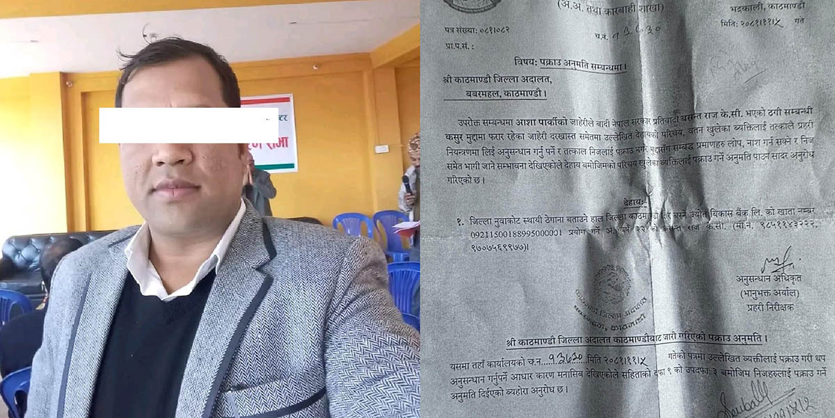 काठमाडौँ । ठगी मुद्दामा संलग्न रहेको अभियोगमा नेपाली कांग्रेसका महाधिवेशन प्रतिनिधि बसन्त राज केसी पाँच महिनादेखि फरार छन् । काठमाडौं जिल्ला अदालतले २०८१ साल फागुन ५ गते पक्राउ पुर्जी जारी गरे पनि प्रहरीले उनलाई अहिलेसम्म पक्राउ गर्न सकेको छैन । ३३...