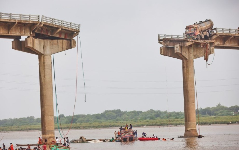 भारतको गुजरातमा जीर्ण पुल भासिँदा नदीमा खसे सवारी, ९ जनाको मृत्यु
