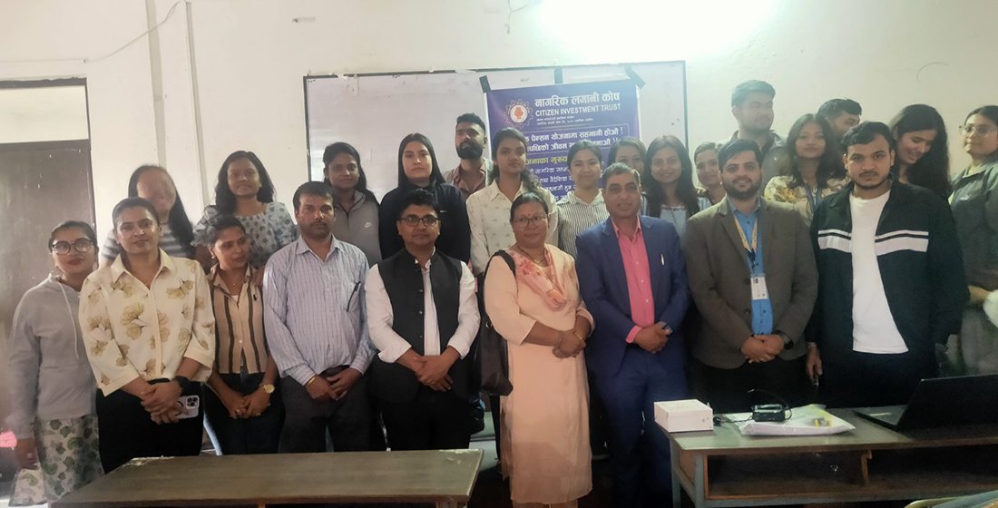काठमाडौं । नेपाल कमर्श क्याम्पस मिनभवनका एमविए फाइनान्सका विद्यार्थीहरूलाई नागरिक लगानी कोषले नागरिक पेन्सन योजना र पुँजी बजारसम्बन्धी प्रशिक्षण दिएको छ । कार्यक्रममा कोषका उप निर्देशक नारायण घिमिरेले पेन्सन योजनामा सहभागी हुने प्रक्रिया, लाभ र योजनाको उद्देश्यबारे जानकारी दिँदै...