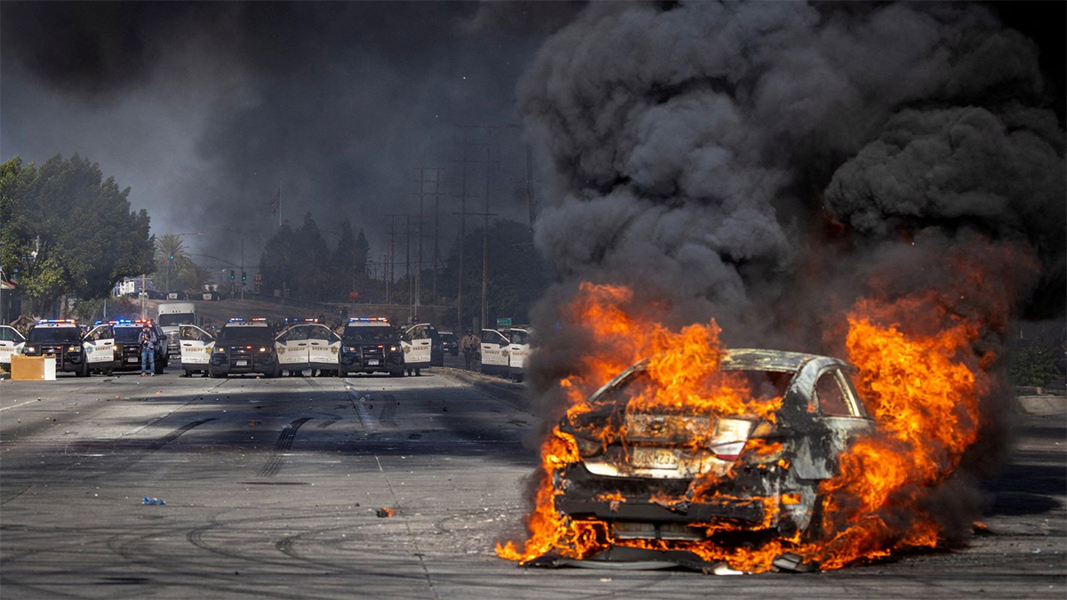 लस एन्जलसमा राष्ट्रिय सुरक्षागार्डका गाडीहरुमा आगजनी, अर्बौको बीमा दावी पर्ने आंकलन