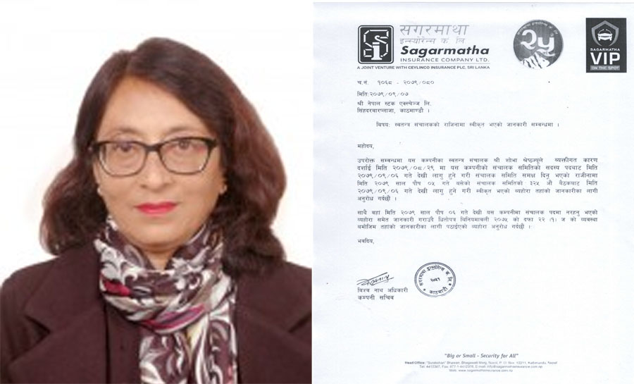सगरमाथा इन्स्योरेन्सकी स्वतन्त्र संचालक शोभा श्रेष्ठद्धारा राजिनामा