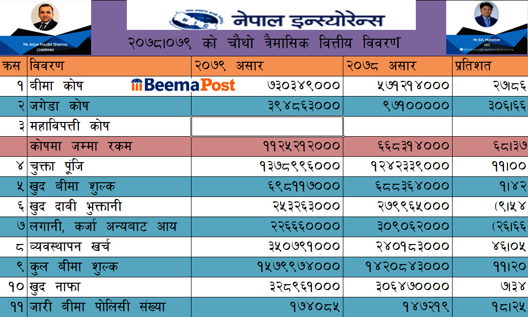 नेपाल इन्स्योरेन्सको कुल बीमाशुल्क आर्जन १ अर्ब ५७ करोड माथि, प्रतिशेयर आम्दानी कति ?